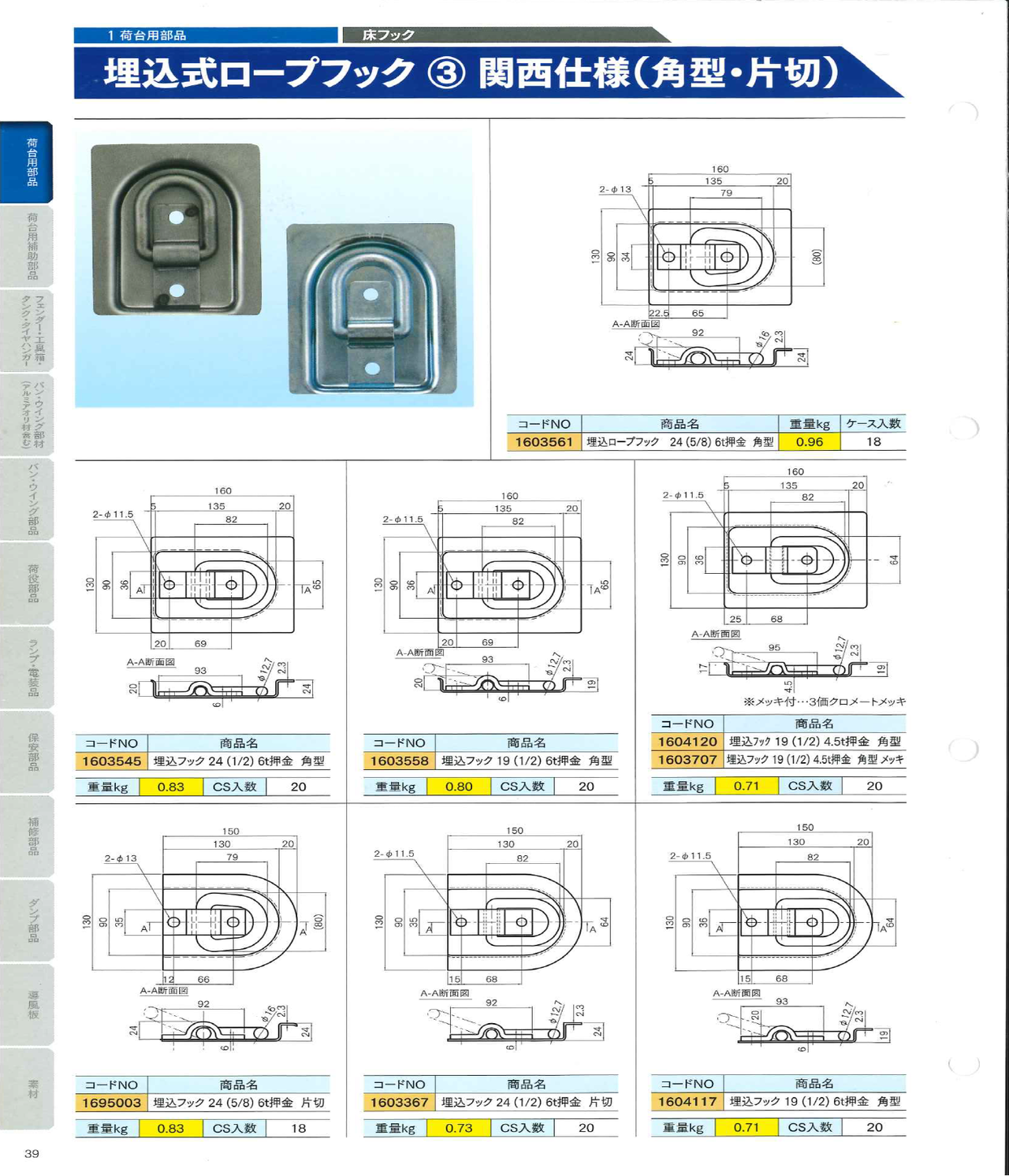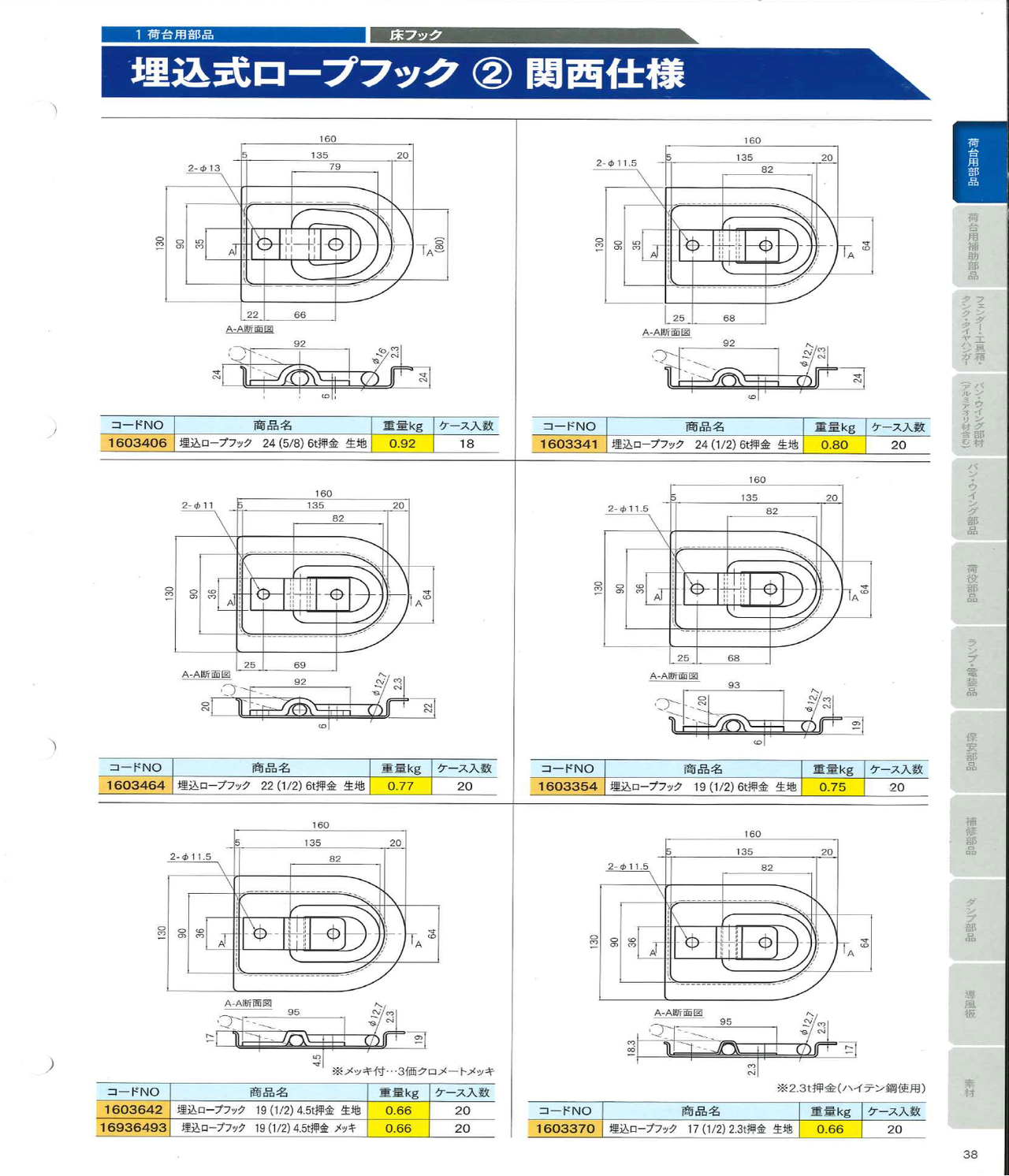 埋込ロープフック6