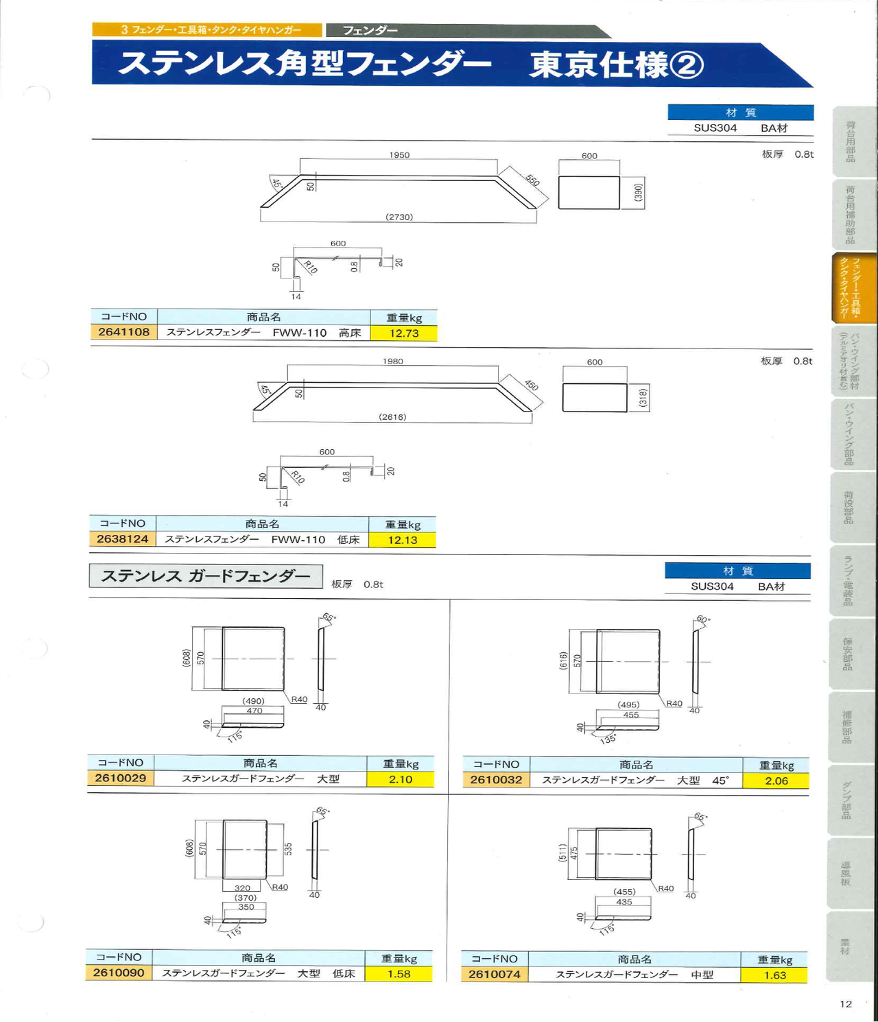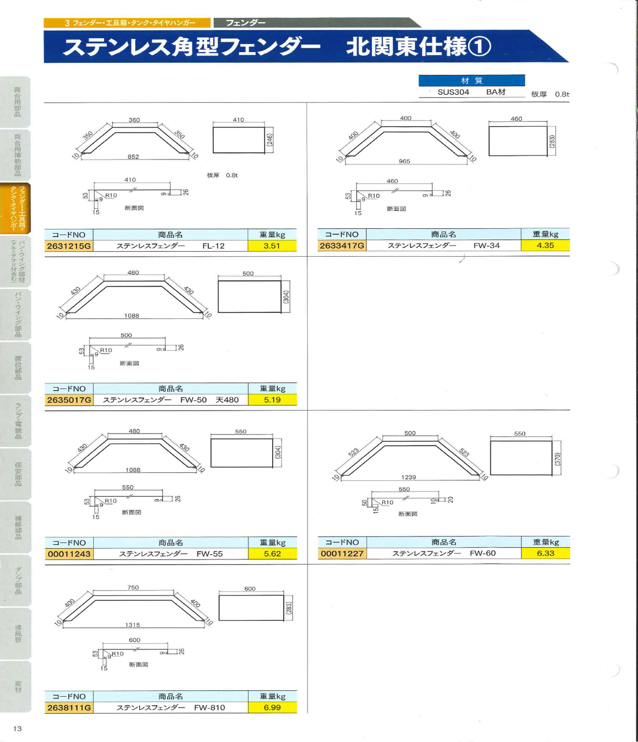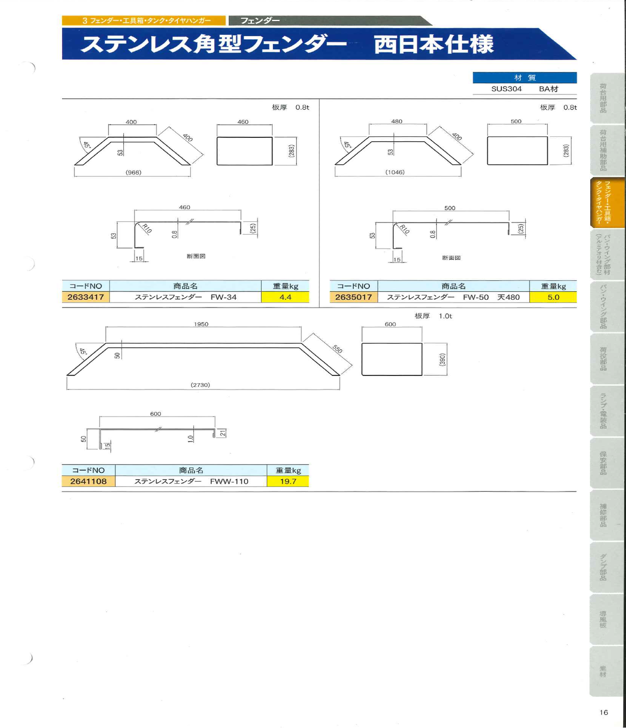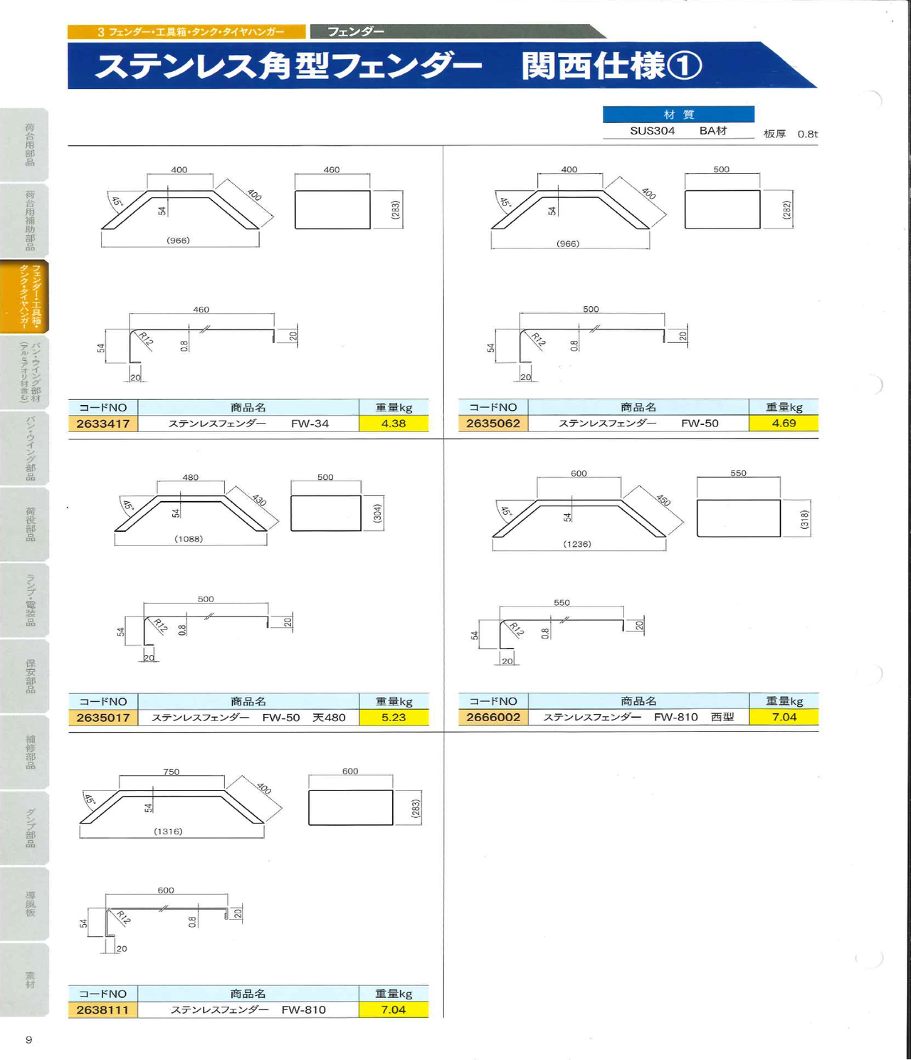 角型フェンダー5 ステンレス