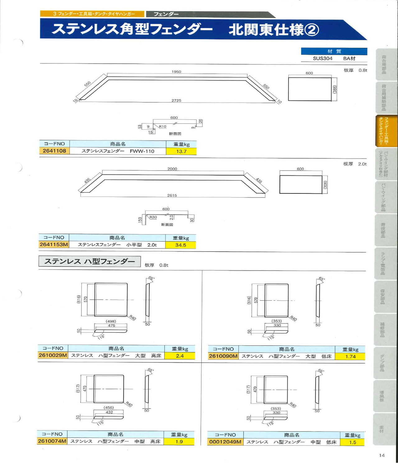 角型フェンダー4 ステンレス