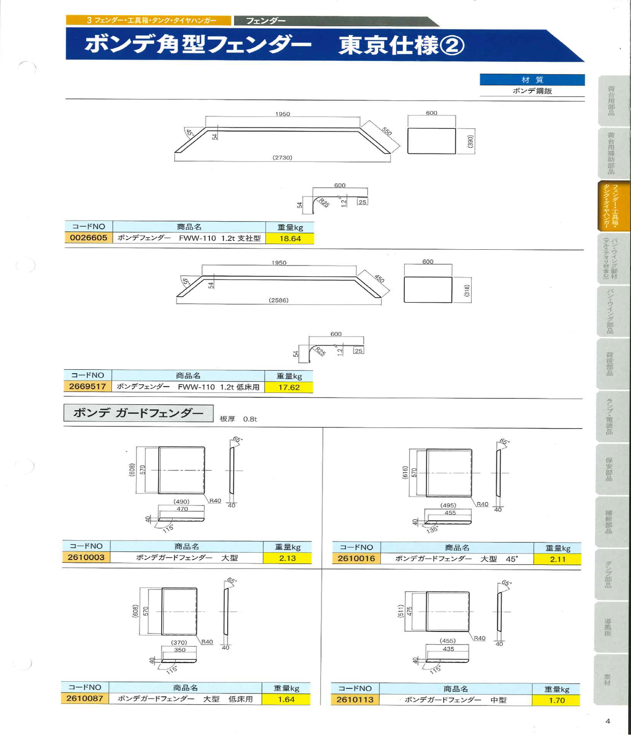 角型フェンダー4 ボンデ